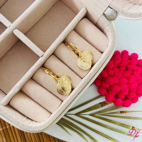 Brinco Argola Click Medalha Dupla São Bento Banhado a Ouro